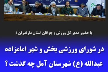به گزارش حبرگزاری ایسنا / شورای ورزشی بخش و شهر امامزاده عبدالله ع شهرستان آمل به منظور ارائه مشکلات ورزشی منطقه و راهکارهایی برای حل آنها، با حضور مدیر کل ورزش و جوانان مازندران ، امام جمعه امام زاده عبدالله ع ، دهیاران، ورزشکاران، مربیان و دیگر مسئولان در سالن اجتماعات شهرداری امامزاده عبدالله ع برگزار شد.