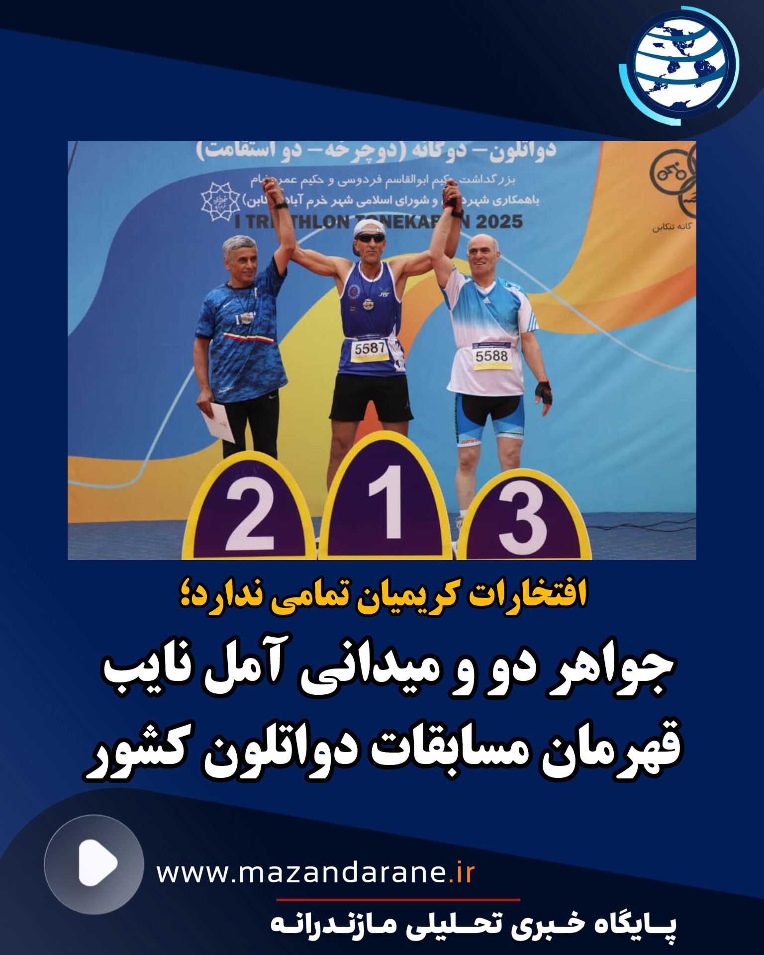 بهرام کریمیان جواهر دو و میدانی شهرستان آمل در این دوره از مسابقات در رده سنی ۵۵ الی ۶۰ سال توانست مقام نایب قهرمانی را کسب کند و به افتخارات بیشمار خود مدال دیگری را اضافه کند.