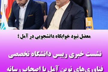روز گذشته علیاکبر حاجیزاده مقدم رییس دانشگاه تخصصی فناوریهای نوین آمل طی نشست با خبرنگاران، موضوعات مختلفی را مطرح کرد که از مهمترین این صحبتها، می توان به نبود خوابگاه دانشجویی در آمل با توجه به تحصیل حدود ۲۰ هزار دانشجو در شهرستان اشاره کرد.