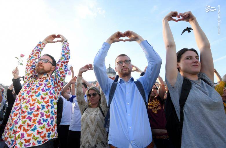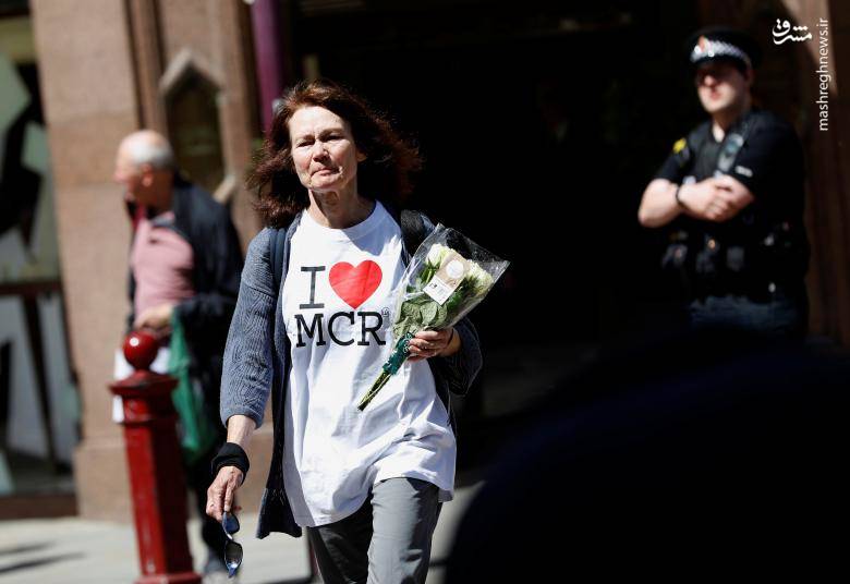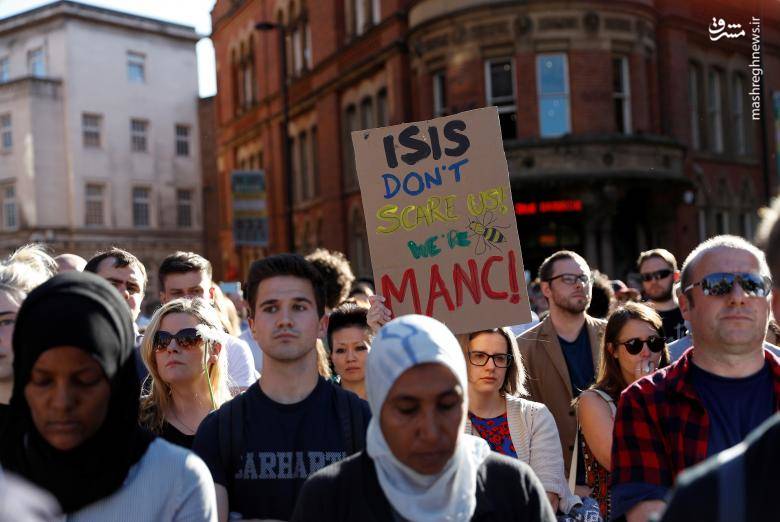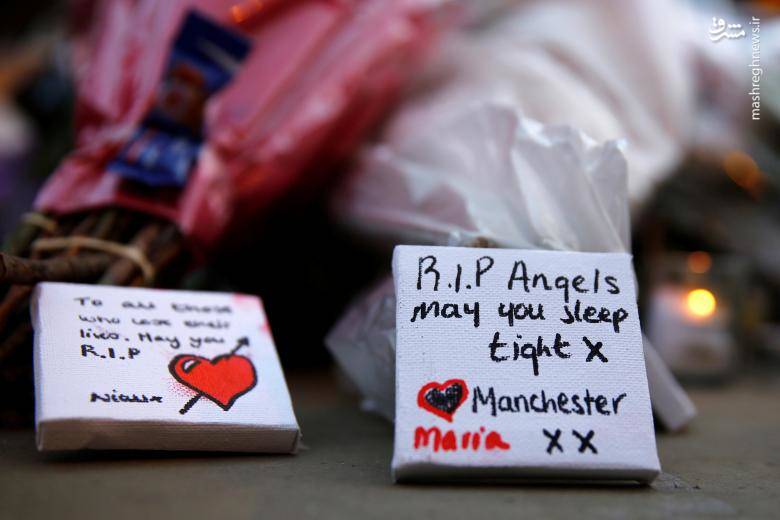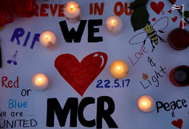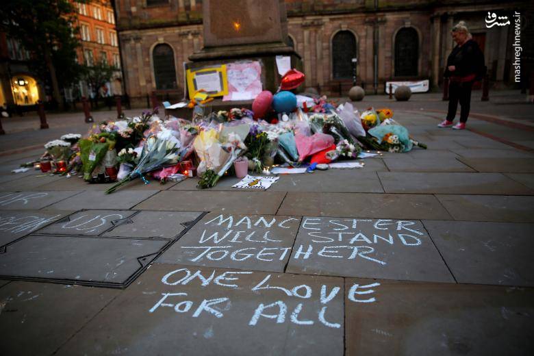 ادای احترام شهروندان شهر منچستر انگلیس به قربانیان حادثه تروریستی کنسرت موسیقی که دوشنبه شب که ۲۲ تن در آن کشته شدند. / عکس: Reuters