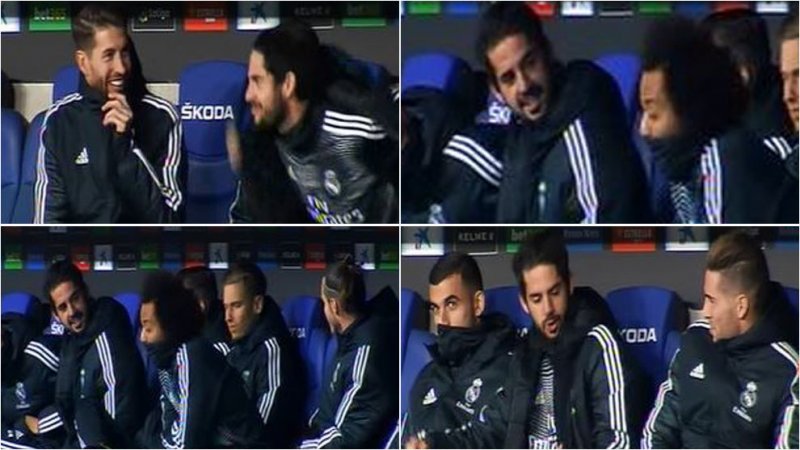 ایسکو و بیل نیز روی نیمکت رئال، با خواندن این شعار با هواداران حریف همراهی میکردند.
