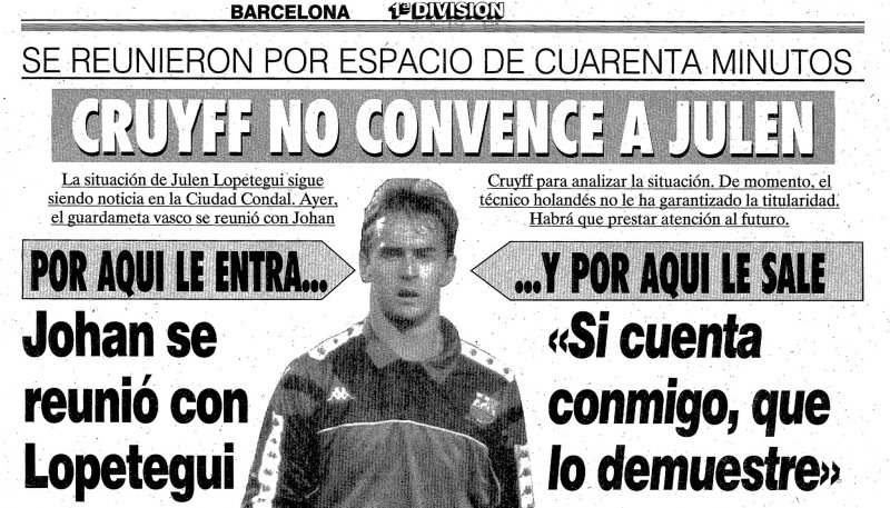 با مصدومیت بوسکتس و دو بازی که آنگوی به میدان رفت، سرانجام کرویف تصمیم گرفت به لوپتگی اعتماد کند. حاصل کار دو شکست ۴-۲ و ۱-۰ برابر سویا و لاکرونیا بود و یک تساوی خانگی برابر سلتا. لوپتگی سپس بار دیگر نیمکت نشین شد و فصل برای او و بارسا بدون هیچ افتخاری به اتمام رسید.