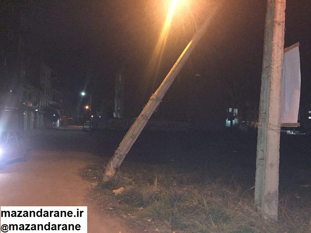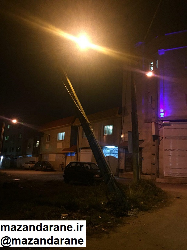 تیر چراغ برق در آمل به دلایل نامعلوم خم شده است و گویا میل تعویض و تعمیر هم ندارد اما با توجه به شدت خمیدگی این تیر برق،احتمال سقوط آن زیاد است و به دلیل اتصال کنونی آن به شبکه برق ممکن است منجر به بلایا و مشکلات دیگری پس از سقوط شود.