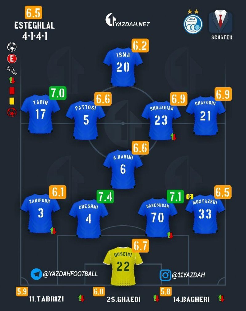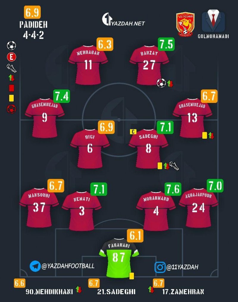 محمد قاسمینژاد(۴۲) اکبر صادقی(۳+۴۵) عبدالله حسینی(۶۷) میلاد فراهانی(۸۹) از پدیده