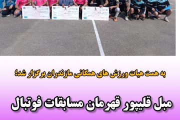 روهام ابوطالبی رییس هیات ورزش های همگانی استان مازندران در گفتگوی اختصاصی با مازندرانه بیان کرد: مسابقات فوتبال خیابانی به همت کمیته توسعه فعالیت بدنی کارگران هیات ورزش های همگانی استان مازندران با حضور ۱۴ تیم در پارک جنگلی ش ه ی د زارع ساری برگزار و در نهایت تیم مبل قلیپور کلکنار قهرمان این دوره از رقابت ها شد.