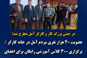 روز گذشته مراسم روز کار و کارگر به همت خانه کارگر شهرستان آمل در سالن ش ه ی د رجایی با حضور پرشور کارگران زحمتکش و خانواده هایشان، نماینده مردم آمل در مجلس، مدیر کل تعاون کار و رفاه اجتماعی مازندران، رییس اداره اصناف، کار و آموزش و پرورش آمل، مسول آستان قدس رضوی شهرستان آمل و دیگر مسئولان استانی و شهرستانی با شکوه برگزار شد.