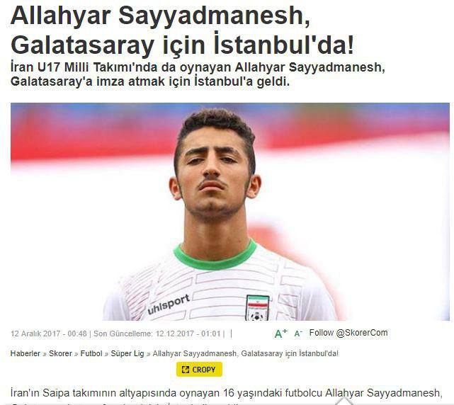 الهیار صیادمنش به تیم فوتبال گالاتاسرای ترکیه پیوست+ عکس